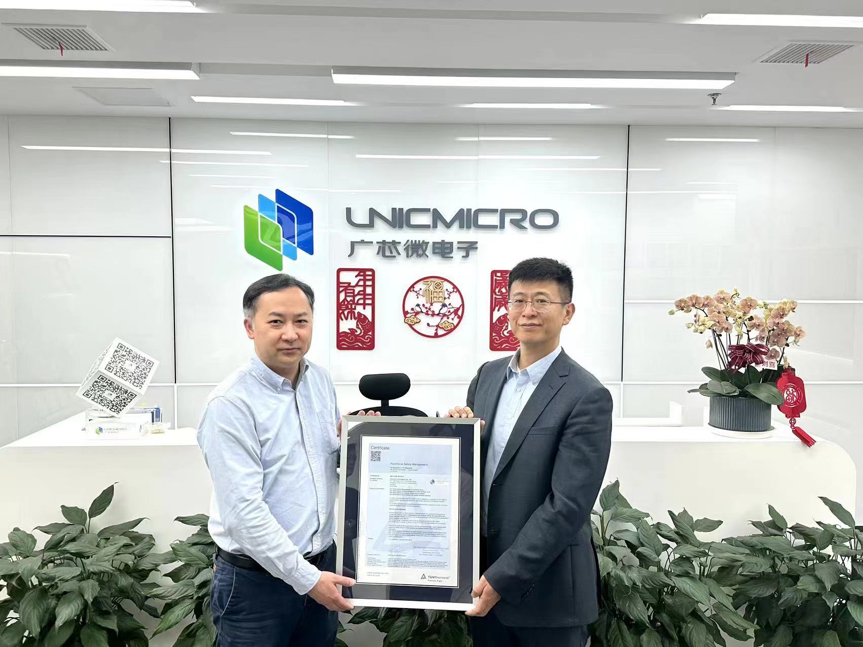 廣芯微董事長兼總經(jīng)理王銳先生、生產(chǎn)運(yùn)營部副總王亞波先生、芯片研發(fā)部副總李建軍先生、安全經(jīng)理王苑女士,TüV萊茵大中華區(qū)工業(yè)服務(wù)與信息安全總經(jīng)理趙斌先生、副總經(jīng)理楊家玥女士等雙方代表出席了此次儀式。