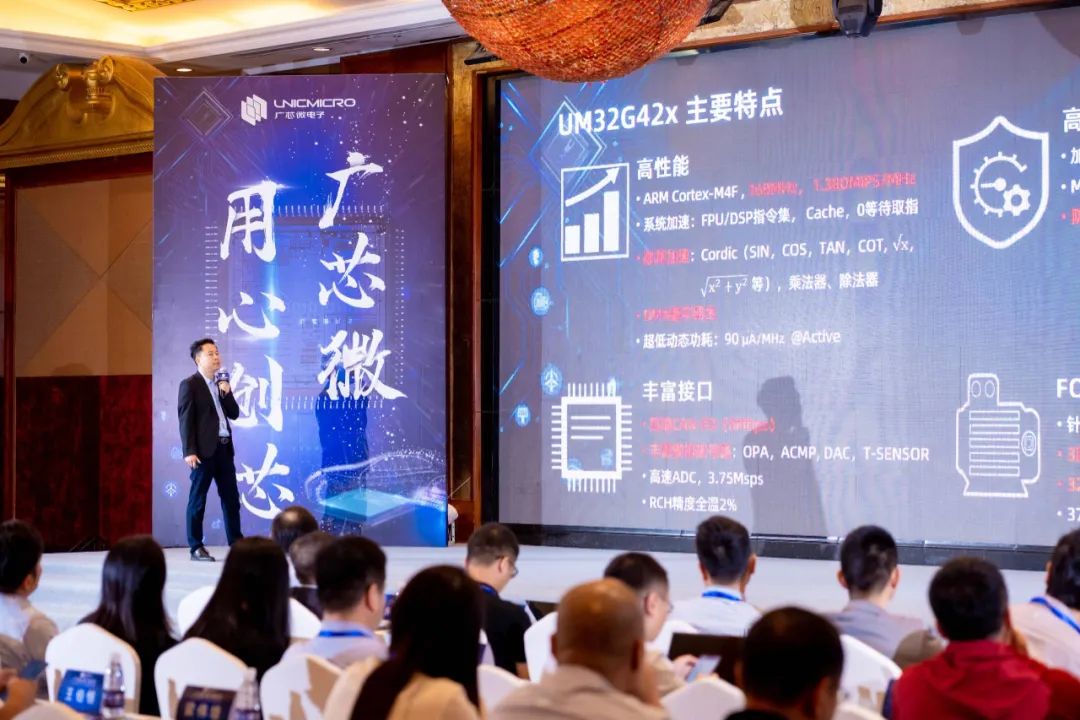 在MCU芯片平臺的發展上,廣芯微結合市場需求,開發一系列差異化、特色化的32位MCU產品,包括CoreMark 1076 分,支持312MHz 主頻的 高性能Cortex-M4芯片UM32H47x,針對雙電阻/三電阻FOC控制需求的UM32G42x,適用于單電阻FOC控制的MCU UM32G17x,為電機方波場景定制的超低功耗MCU UM32x130和高性價比MCU UM32C11x等產品。