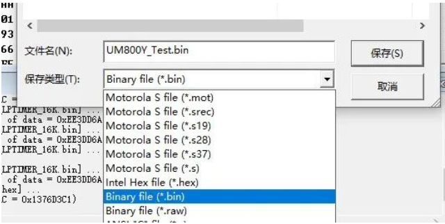 打包成功后。點擊軟件左上角File,選擇Save data file as..將打包好的程序進行保存,保存的格式為bin或者hex。