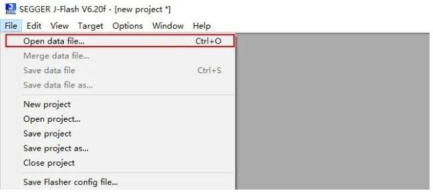 首先打開J-Flash工具。點擊open data file,打開用戶app程序的bin或者hex文件。這里選擇軟件開發包里UM800Y_APP文件夾中的Lptimer工程中的bin文件。(可通過hex2bin工具將hex轉換成bin文件)
