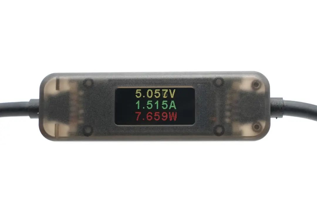 雙USB-C線纜作為大功率傳輸的橋梁,支持通用的百瓦大功率傳輸,越來越多的筆記本電腦都采用USB-C接口進行充電。但是USB-C接口使用USB表檢測電壓電流,雖然可以了解充電狀態,但并不適合普通大眾消費者。 為了滿足廣大消費者在充電過程中檢查電壓電流的需求,知名配件廠商阿卡西斯推出了一款100W的USB-C快充線,線纜自帶0.96英寸顯示屏幕,可以實時顯示當前充電器的輸出電壓和電流,方便消費者了解設備的充電情況。 充電頭網已經拿到了阿卡西斯這款100W數顯快充線,下面就進行拆解,看看這款線纜是怎么設計的。